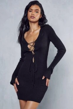 Be the first to review “Lace Up Detail Rib Knit Mini Dress” Cancel reply