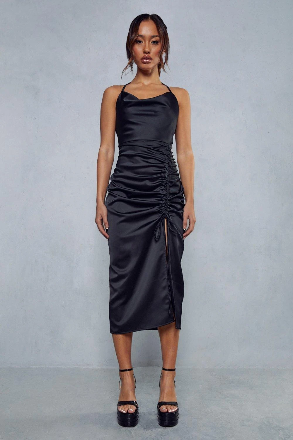 Be the first to review “Premium Satin Cowl Neck Ruched Side Midi Dress” Cancel reply