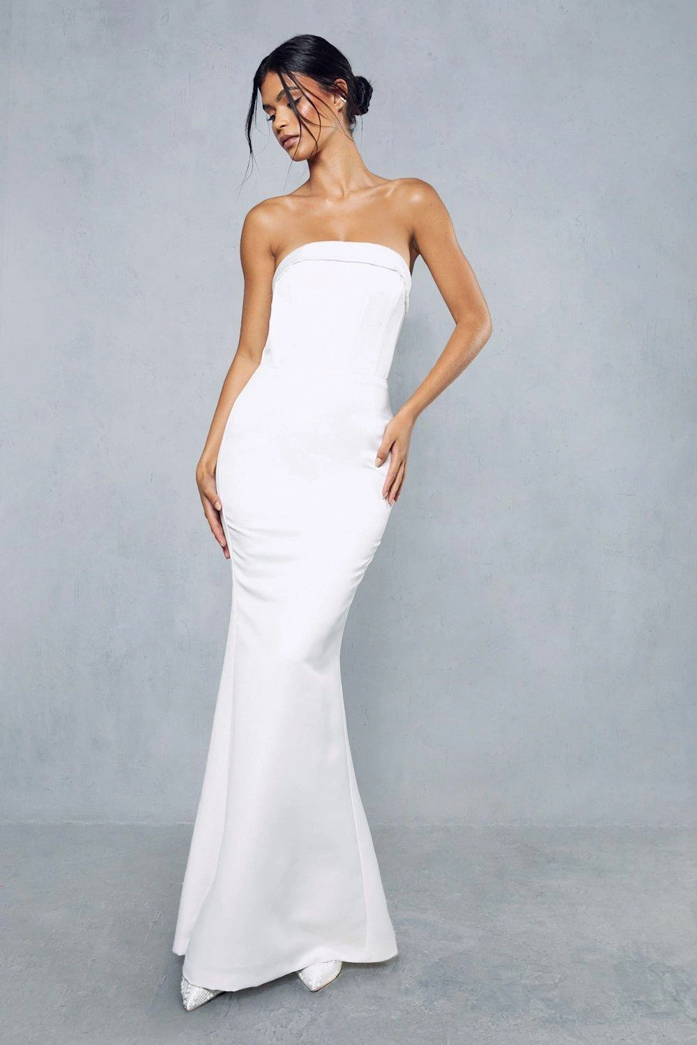 Be the first to review “Premium Satin Strapless Corseted Button Detail Gown” Cancel reply